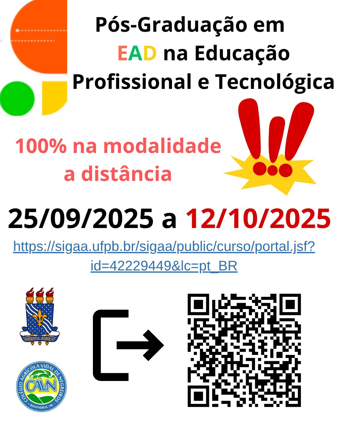 Inscrições: https://sigaa.ufpb.br/sigaa/public/curso/portal.jsf?id=42229449&lc=pt_BR