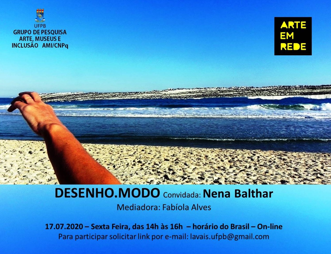 Arte em Rede - Grupo de Pesquisa AMI/UFPB/CNPq - convida: Nena Balthar - Mediação: Fabíola Alves. 17.07.2020 (sexta-feira) das 14h às 16h.