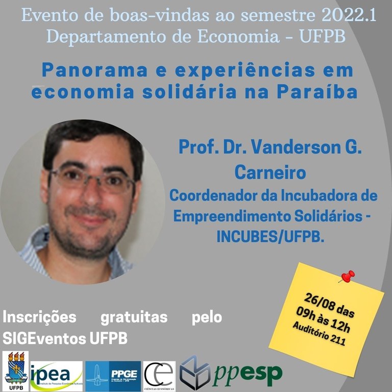 Coordenador da INCUBES participa de evento promovido pelo Departamento de Economia/UFPB
