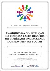 Estão abertas inscrições para participar da III Roda de Conversa Virtual - Caminhos na construção da pesquisa e seus desafios no cotidiano das escolas e movimentos sociais.