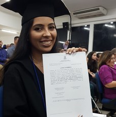 Alia Farias, formada em LEA-NI pela UFPB, primeira bolsista do MINI-Mundo recebeu láurea acadêmica do curso.