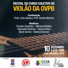 No próximo, sábado, dia 10/12/2022, será realizado o recital de encerramento do curso coletivo de violão da Orquestra de Violões da Paraíba.