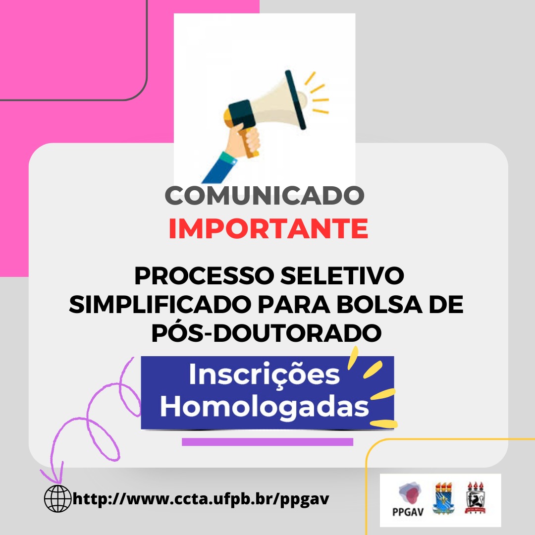 CHAMADA PPGAV 01/2023 PROCESSO SELETIVO SIMPLIFICADO PARA BOLSA DE PÓS-DOUTORADO - HOMOLOGAÇÃO DAS INSCRIÇÕES